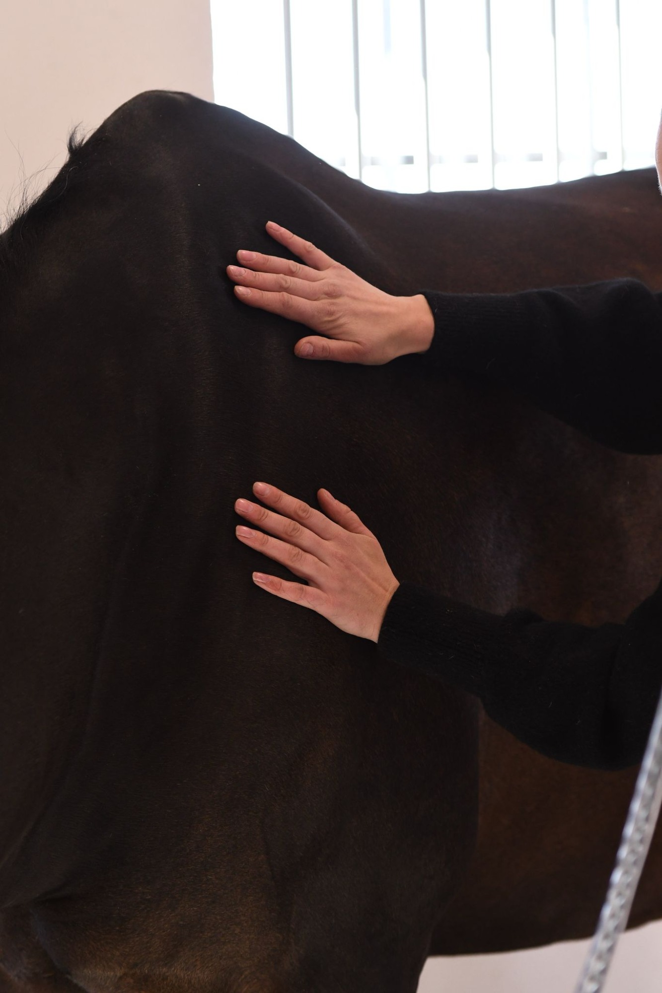 Därefter görs en palpation och analys av hästens befintliga sadelläge och muskelstatus.